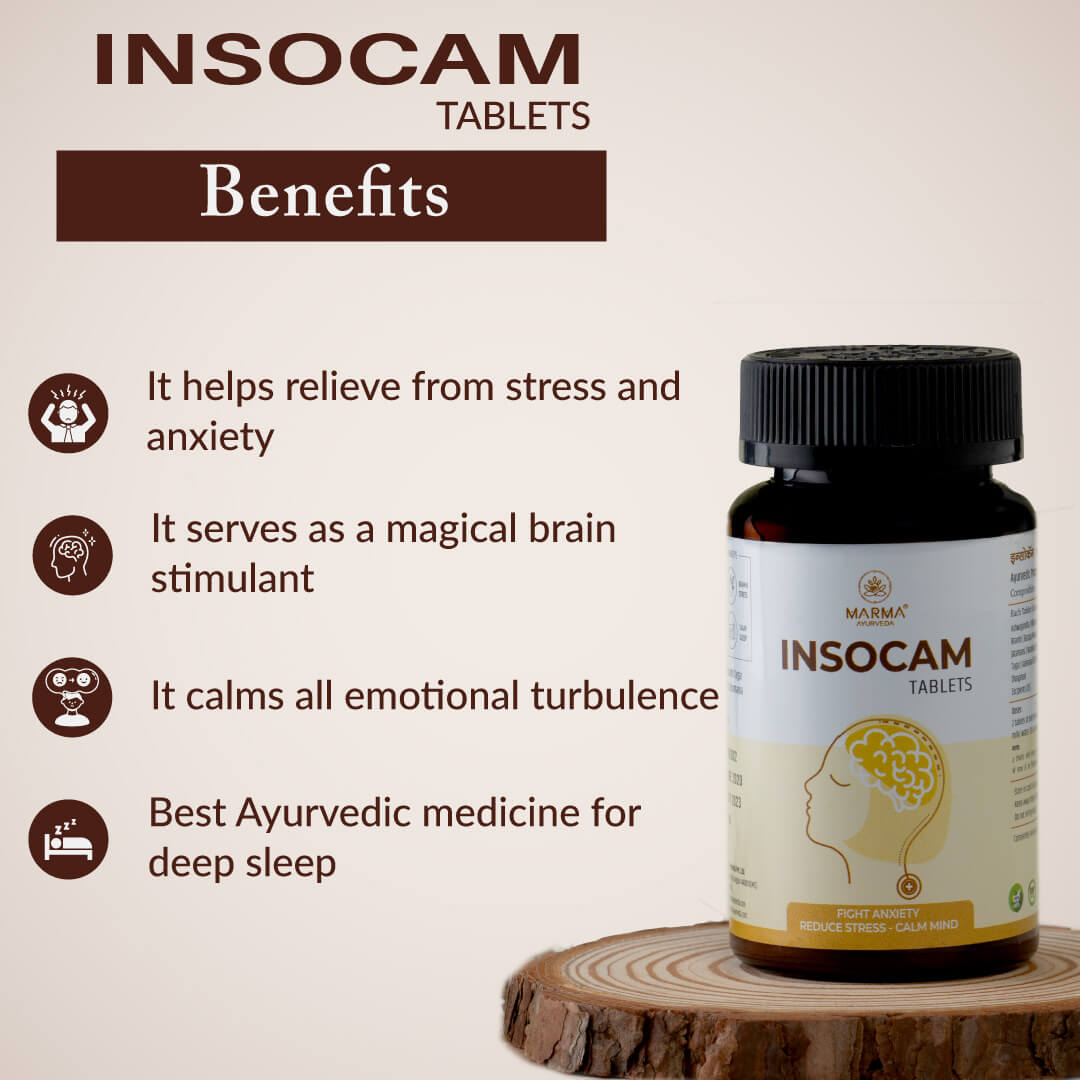 Today’s busy work environments, social media platforms, and overexposure to blue light from cell phones, televisions, and laptops keep you up all night. According to various research, sleep deprivation is also a sign of sadness and anxiety. Insocam Tablet by Marma Ayurveda is the finest & best ayurvedic medicine for depression, anxiety, stress & insomnia